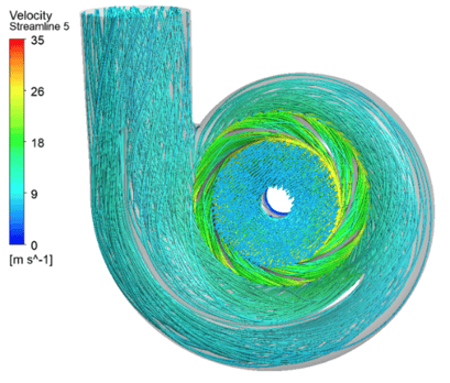 The project involves the design and optimization of a high specific speed centrifugal pump stage. The optimized stage design should deliver the required head with all the stage components and their roughness included while meeting the required suction performance (NPSHR) and axial thrust criteria.