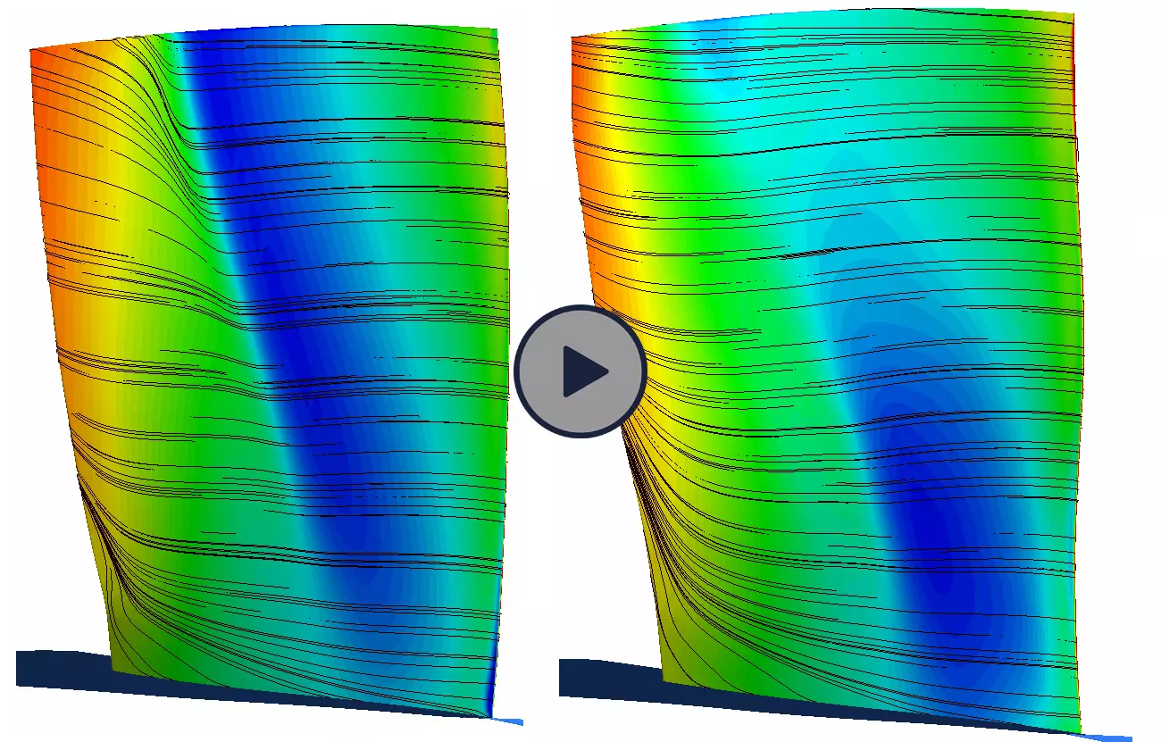 In contrast to the โ€œdirectโ€ design approach, TURBOdesign Suite uses inputs like spanwise work distribution, blade loading on the whole meridional plane and stacking conditions to influence 3D flow phenomena directly.